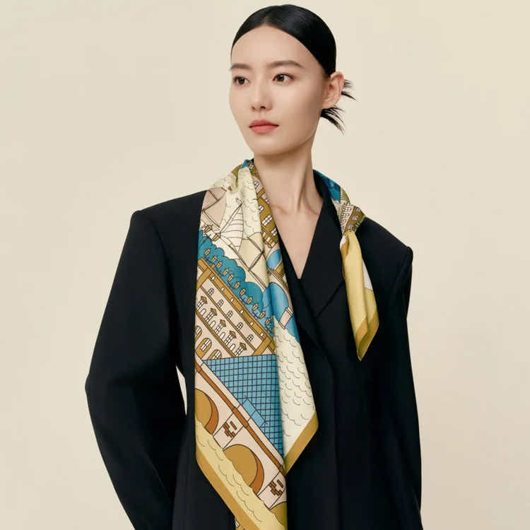 18 Momme Silk Scarf: Breathable Paris Time Walk Art & Global Luxury