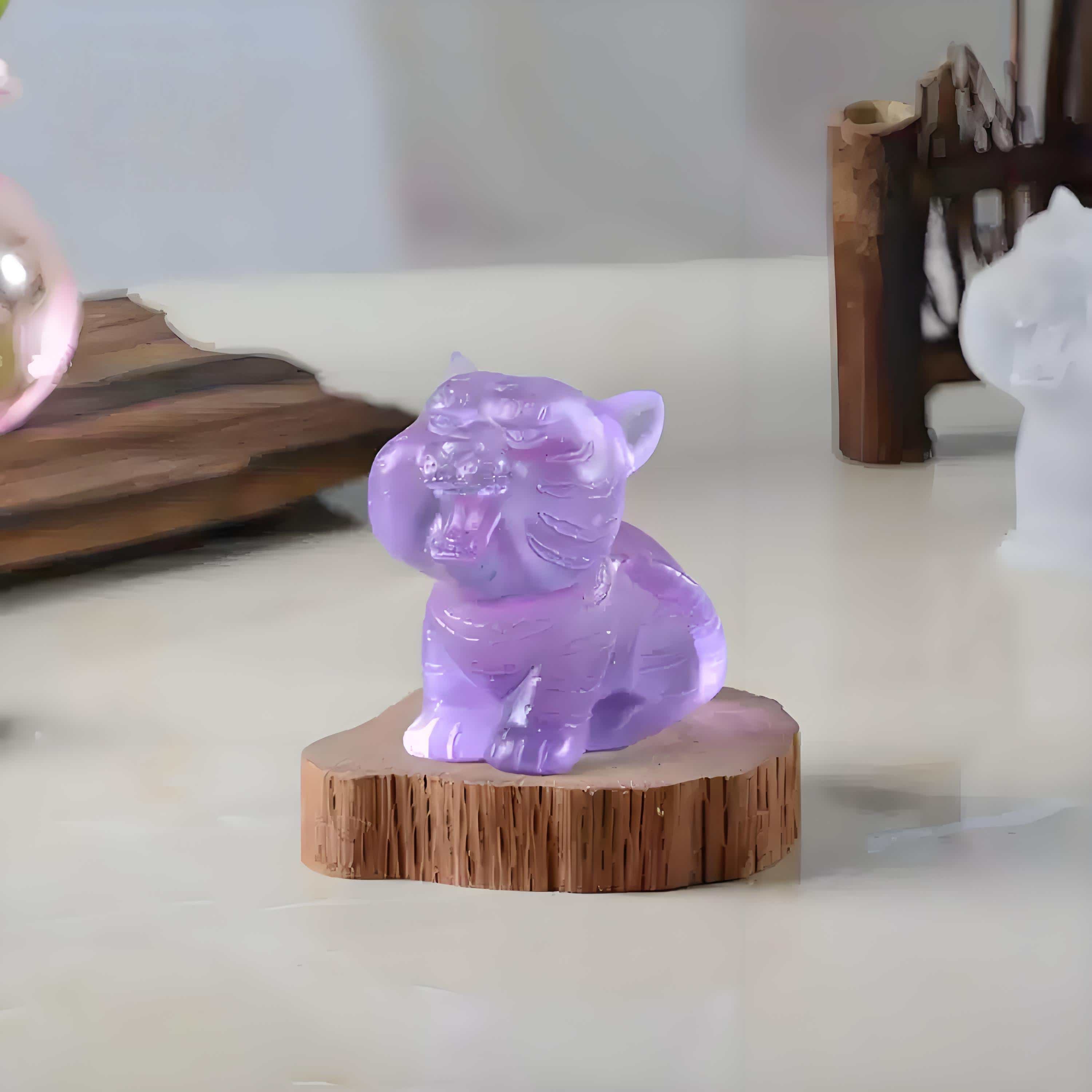 Hand-cast Liuli crystal art made via the ancient lost-wax technique. This charming Tiger symbolizes majestic power and brings good fortune and protection to your home.