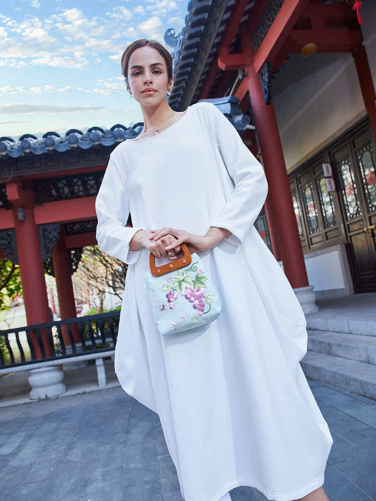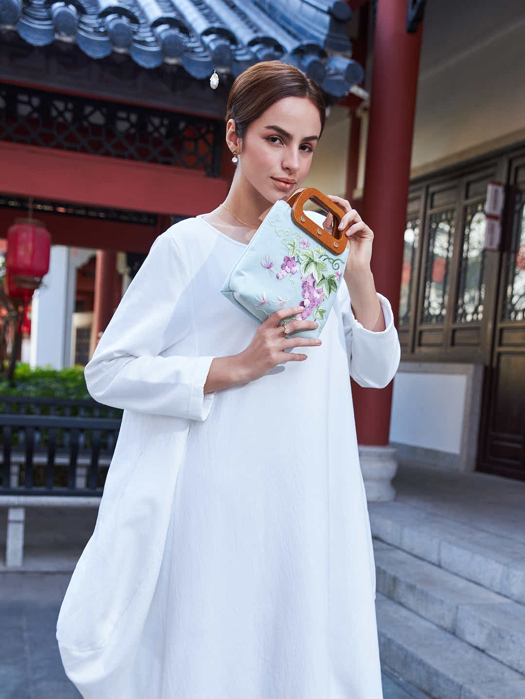 The polished bamboo handle offers a unique aesthetic that elevates the casual canvas, blending sustainable fashion with a high-end, contemporary Chinese design ethos.