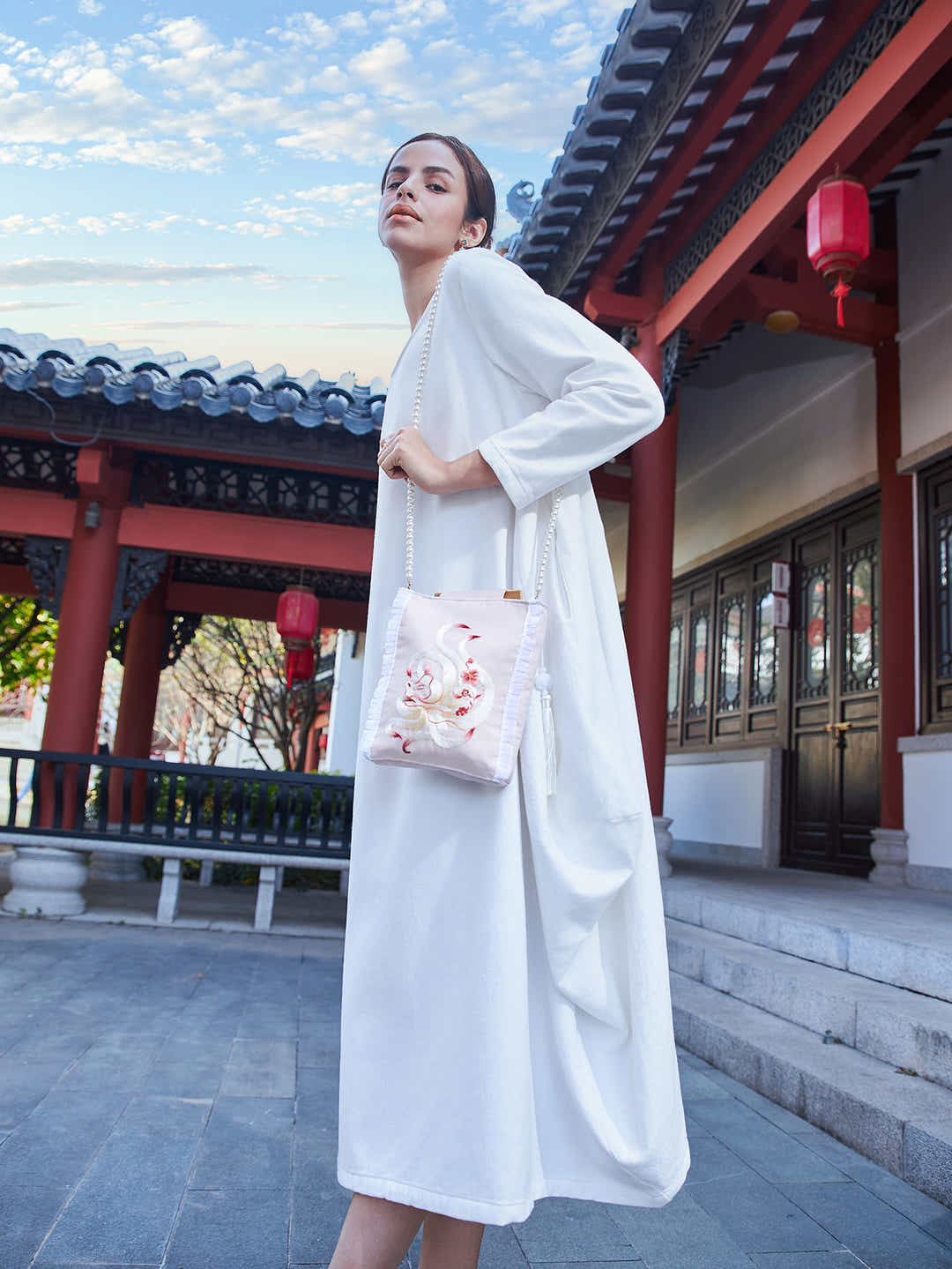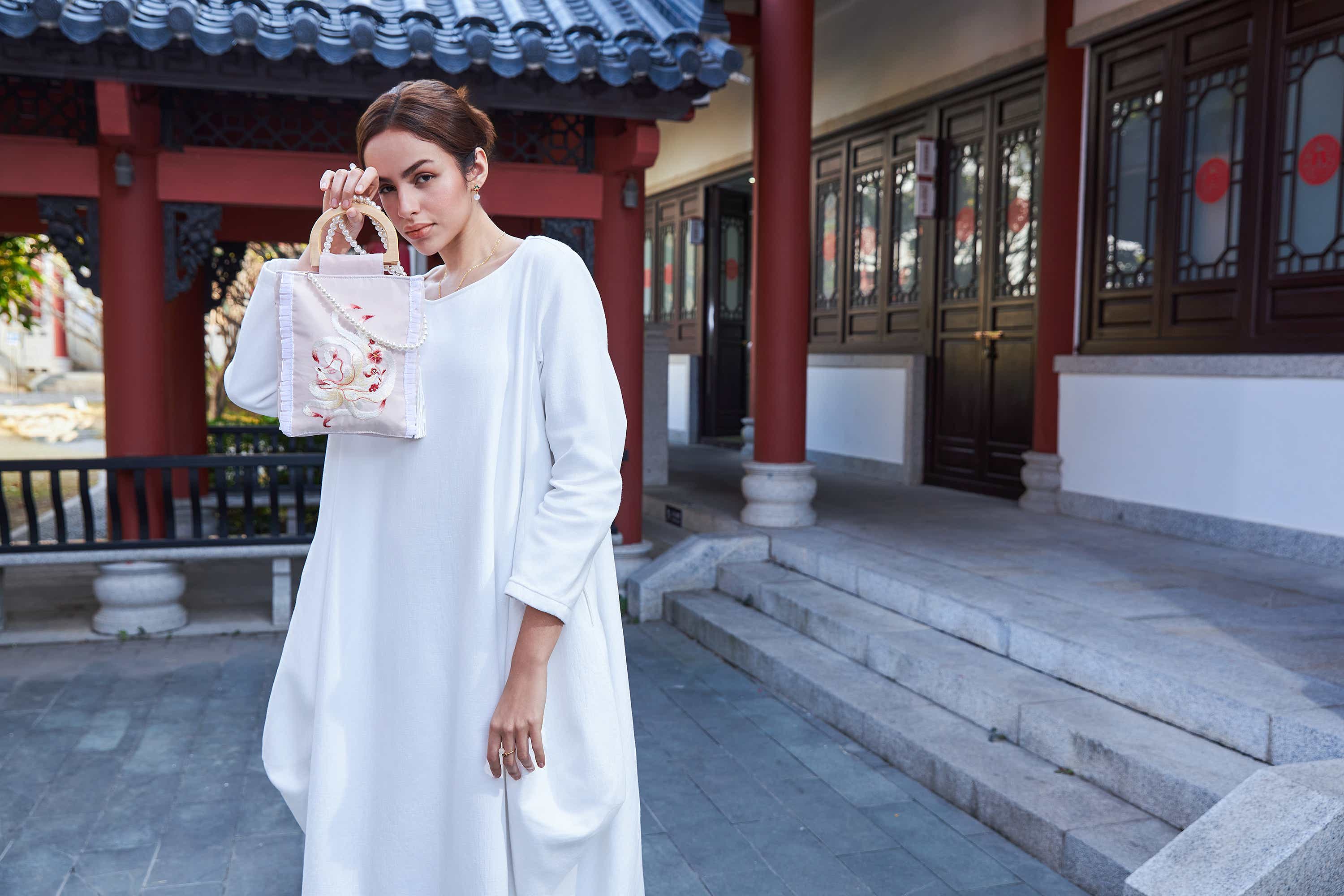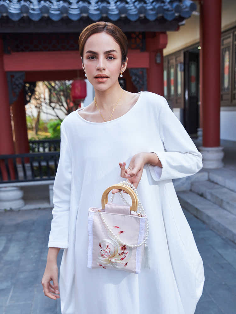 The polished bamboo handle offers a unique aesthetic that elevates the casual canvas, blending sustainable fashion with an authentic, high-end Chinese design ethos.