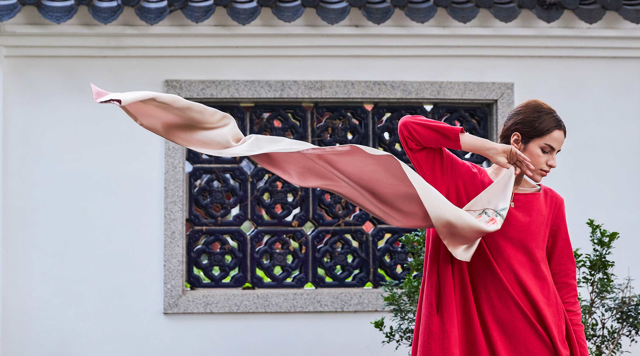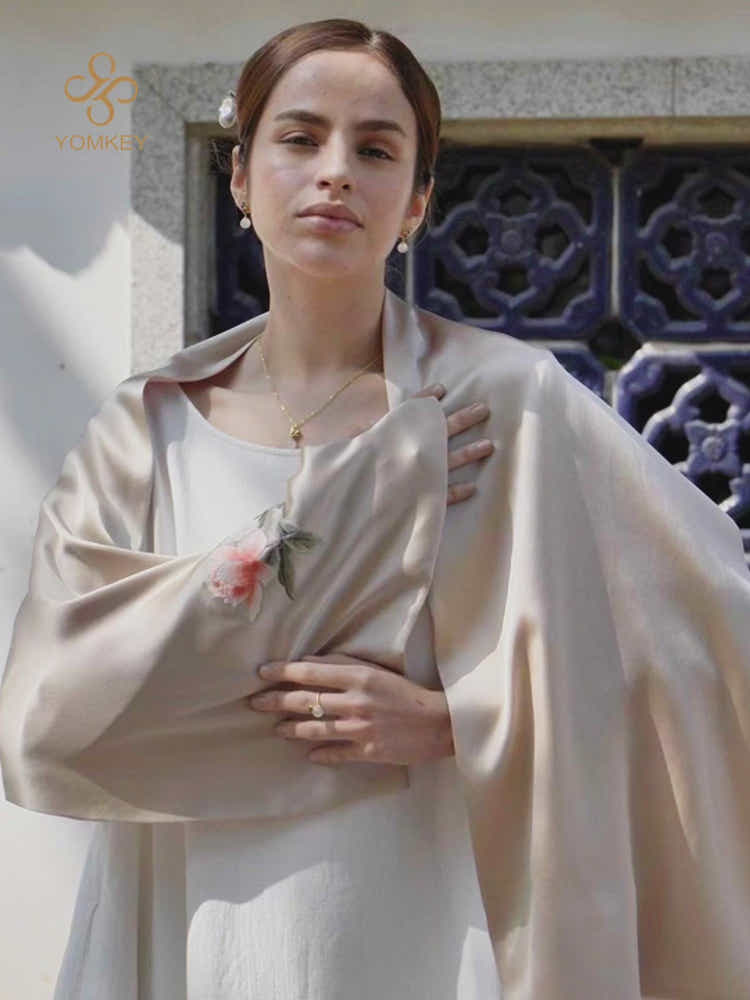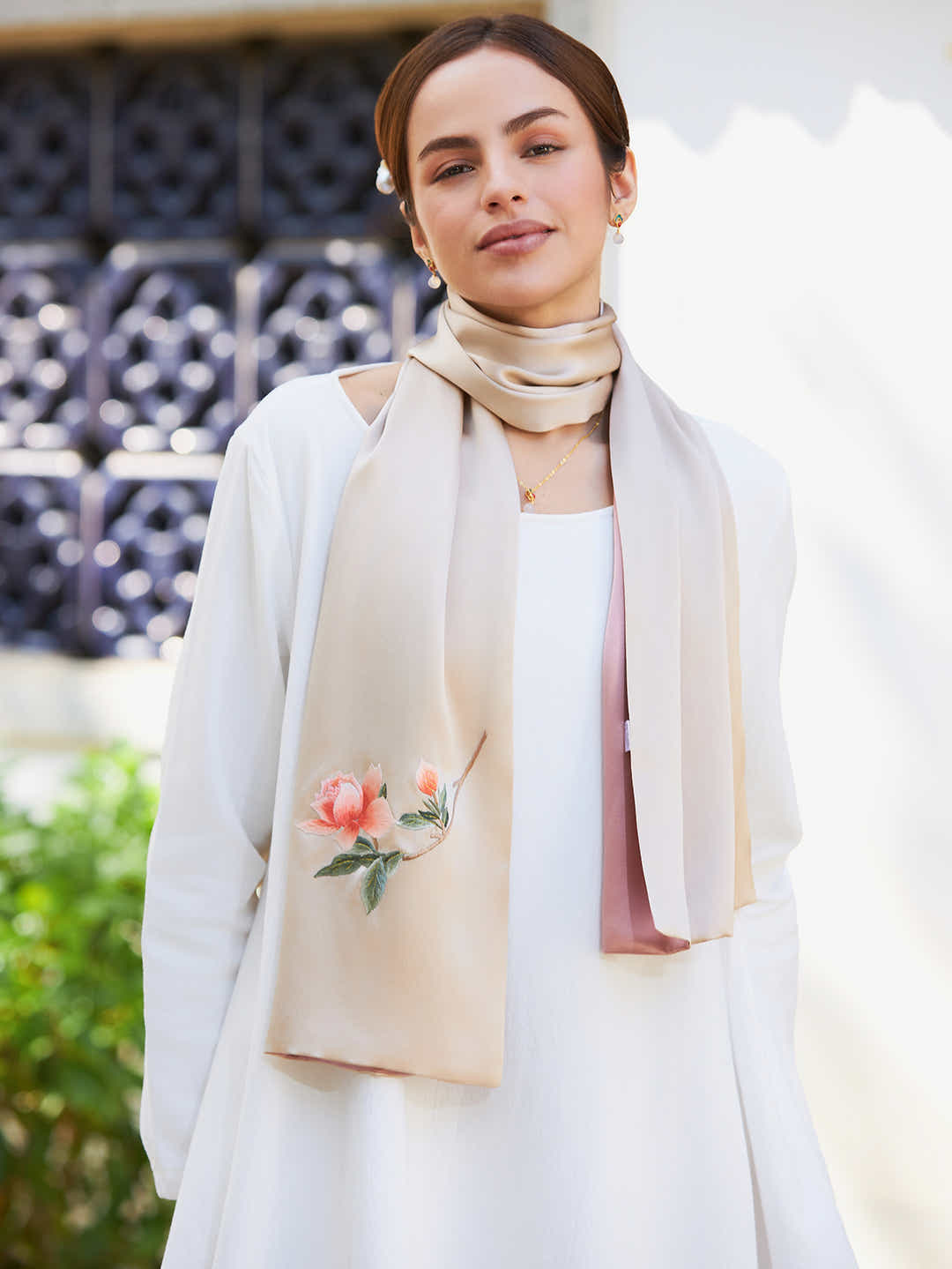 Hand-Embroidered Su Xiu Mulberry Silk Scarf – Champagne Gardenia