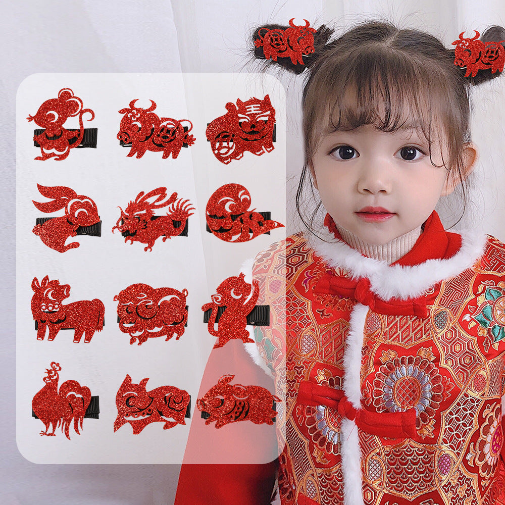 Adorable Sequined Hairclip With The 12 Chinese Zodiac Pattern