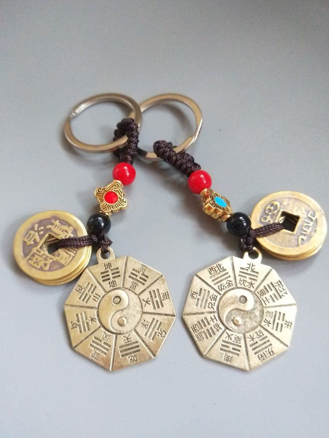 Genuine Copper Keychain: Bagua Compass, Feng Shui Protection Amulet
