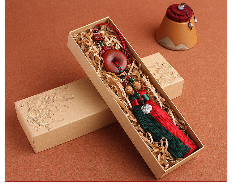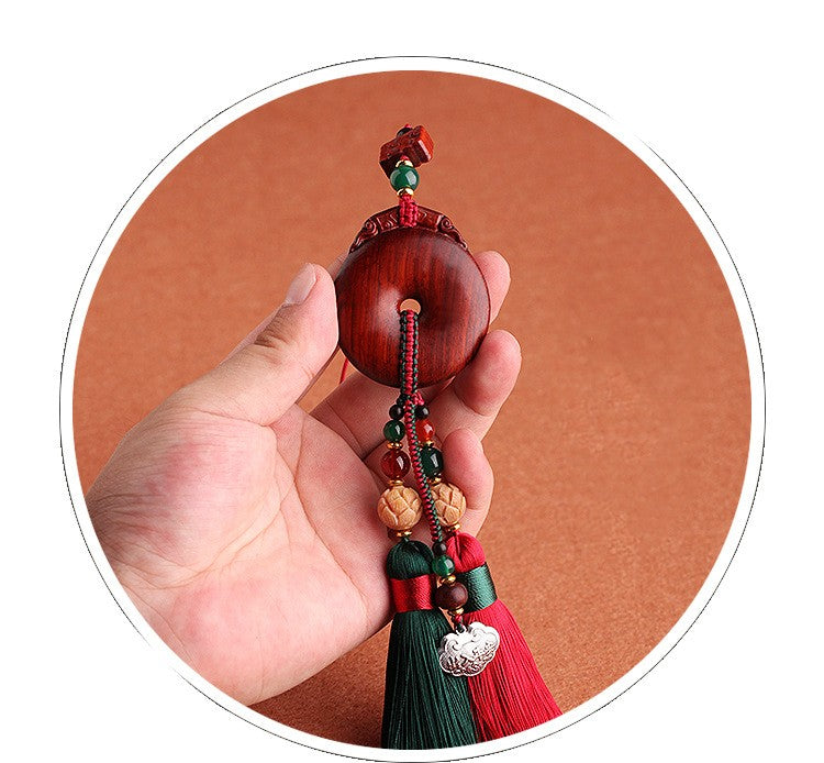 This ornament features a stunning combination of red and green agate beads, ebony, rosewood, and lotus beads, along with intricate tassels, creating a sense of nobility and visual elegance.