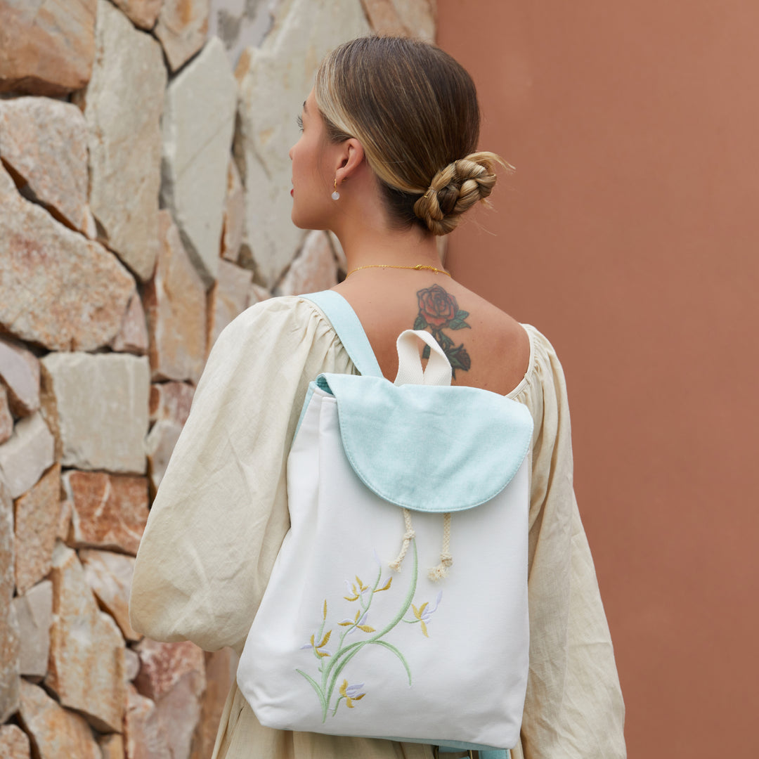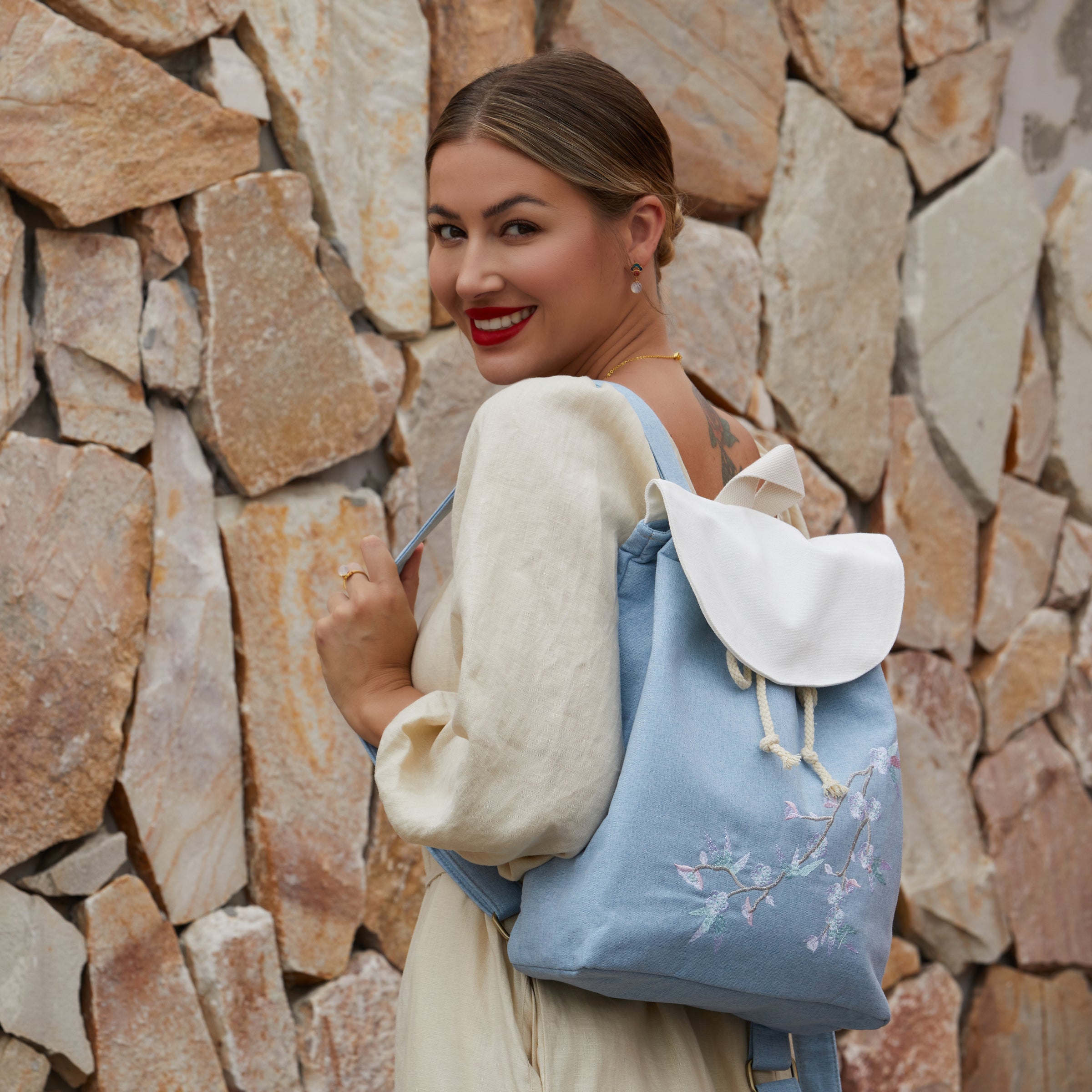 Exquisite Pear Blossom Embroidered, Lightweight Eco-Linen Daypack