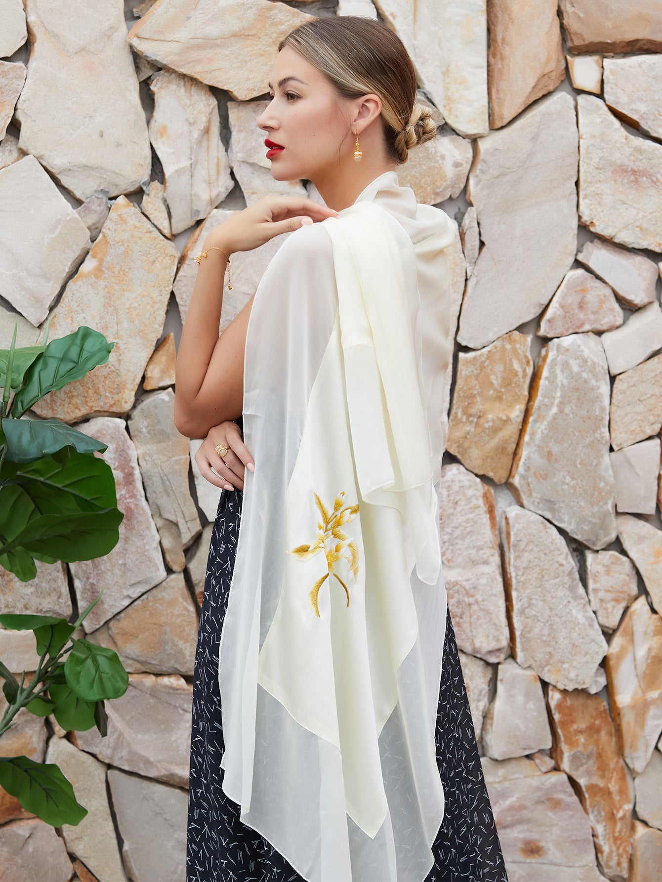 The orange blossom embroidery symbolizes purity, beauty, and new beginnings in Chinese culture, making this scarf the perfect accessory for weddings, anniversaries, and other special occasions. It’s more than just a fashion piece – it’s a meaningful symbol of love, prosperity, and cultural heritage.