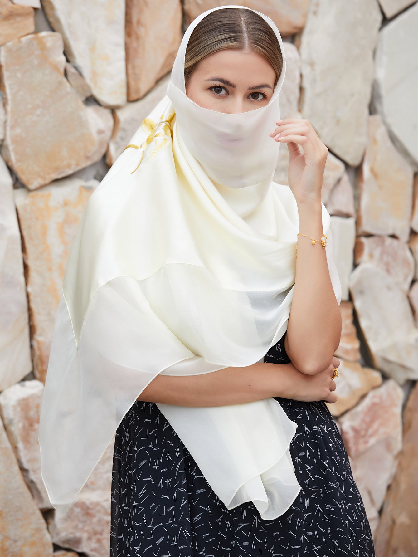Made from 100% mulberry silk, renowned as the "Queen of Fibers," our scarf offers a smooth, soft texture that feels like silk against your skin. The luxurious sheen of the silk not only enhances your complexion but also ensures comfort all year round – warm in winter, cool in summer.