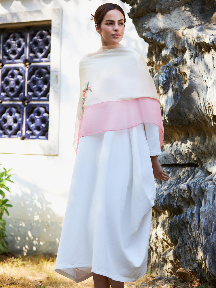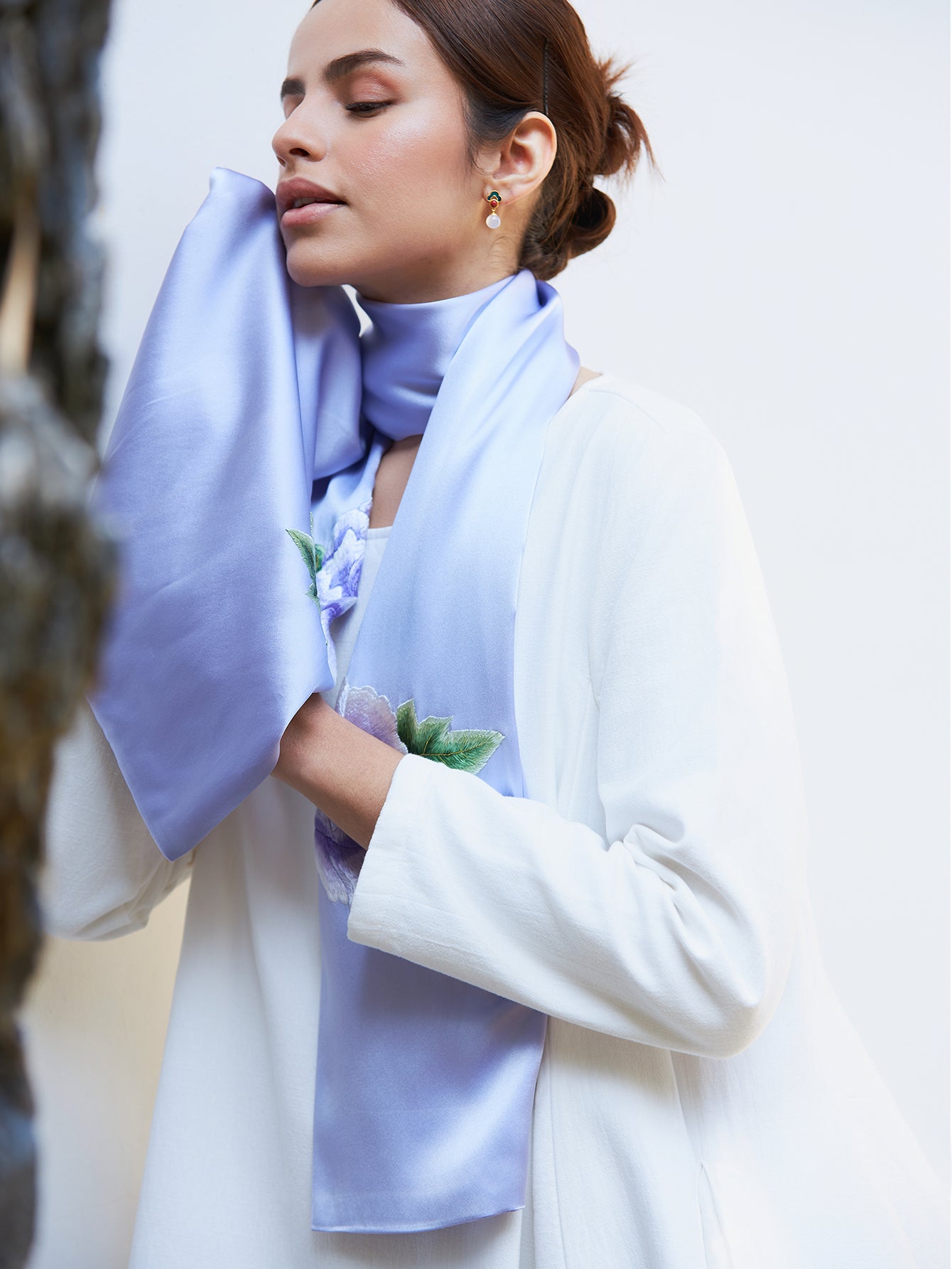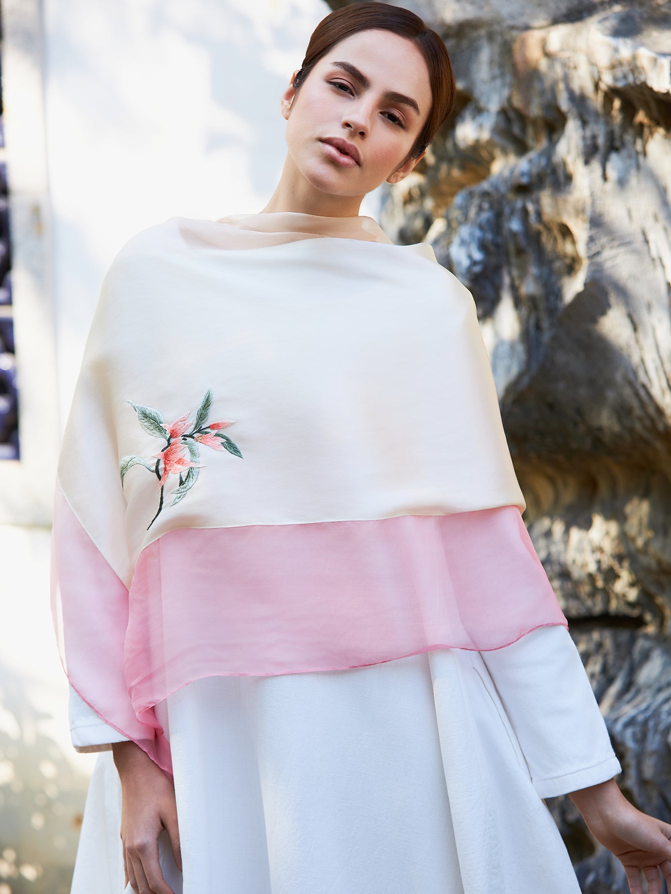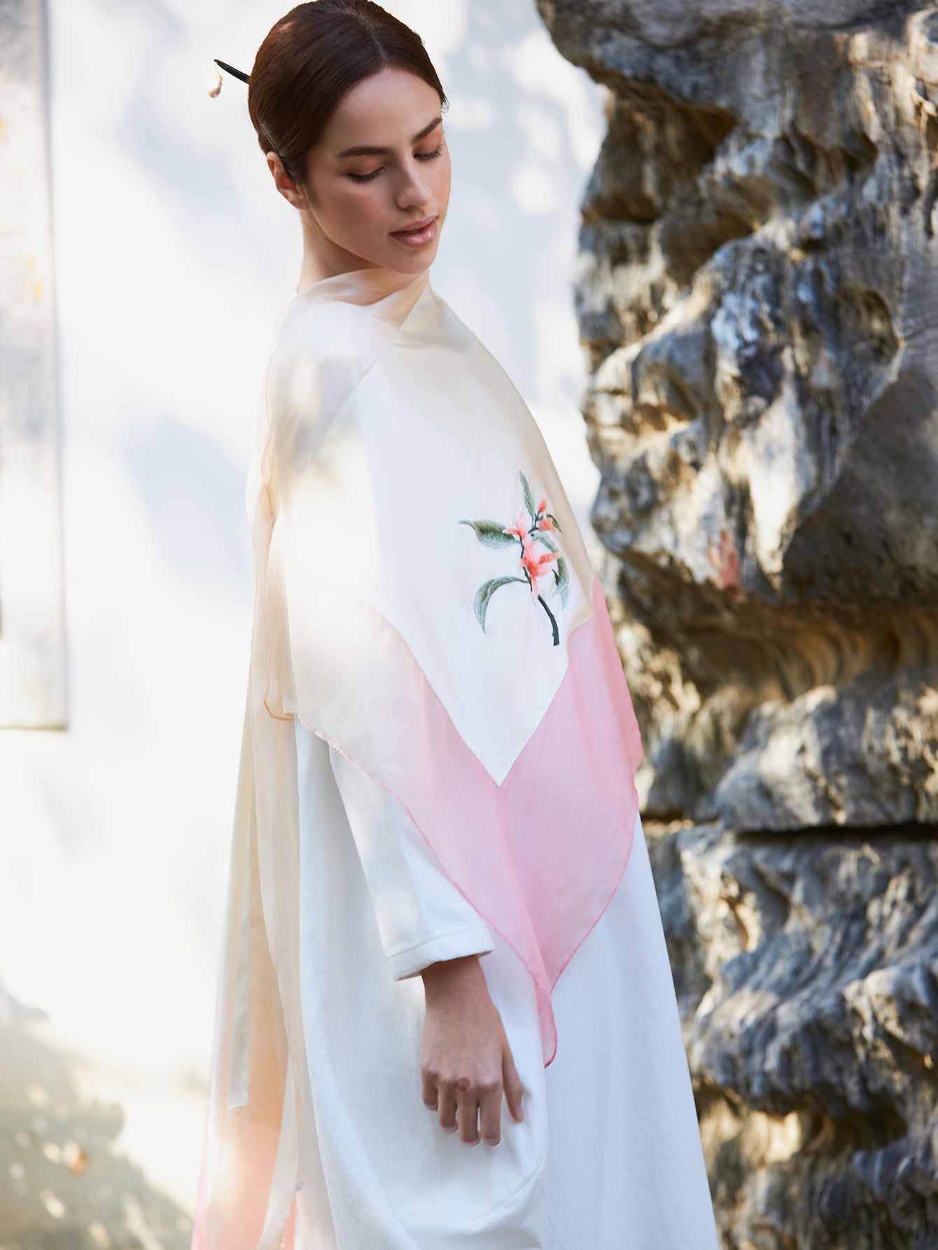 This exquisite scarf features Su Xiu embroidery, an ancient Chinese craft dating back over 2,500 years, recognized as part of China’s intangible cultural heritage. Hand-embroidered by master artisans in Suzhou, it captures the beauty and precision of traditional Chinese artistry.
