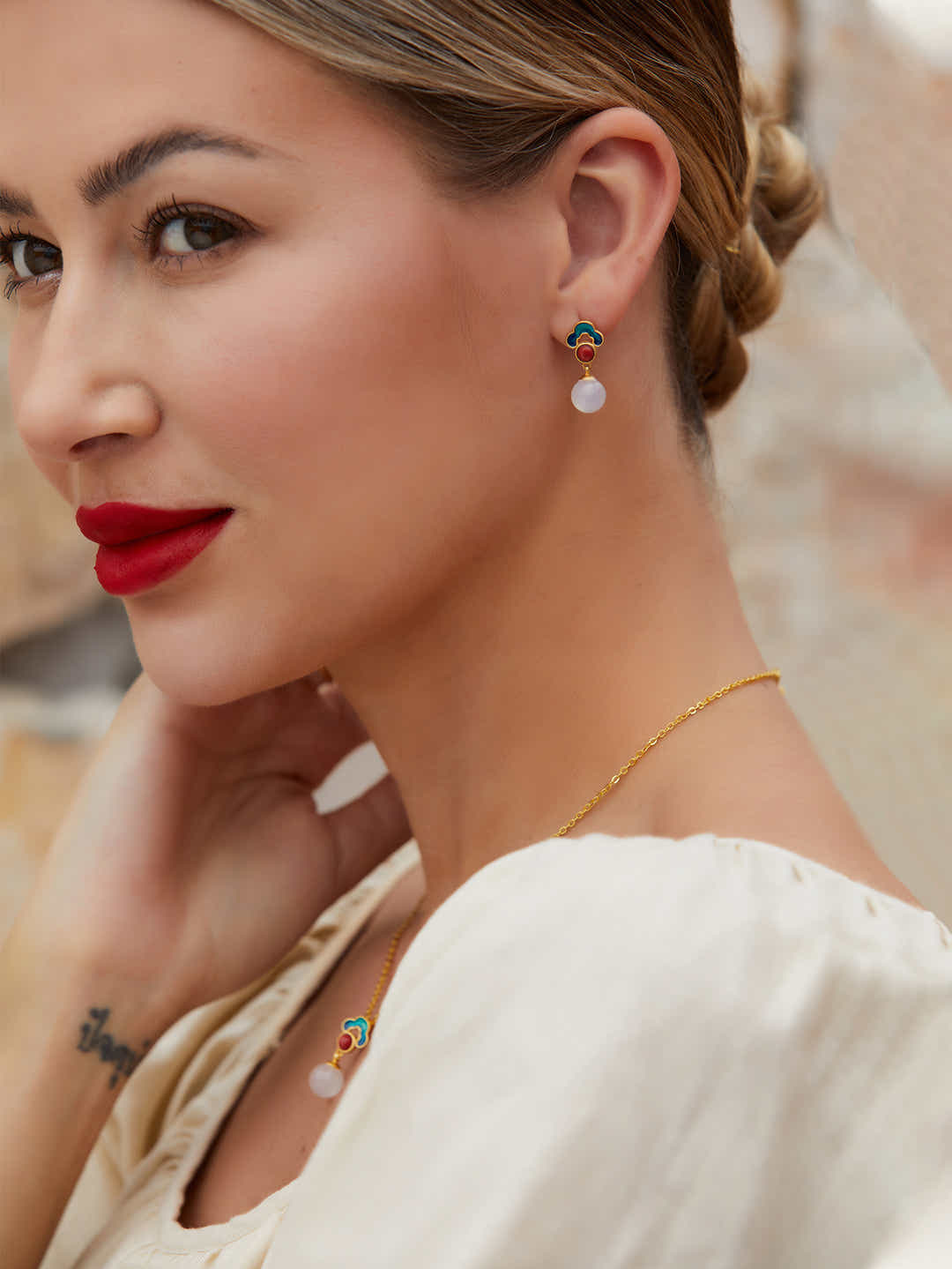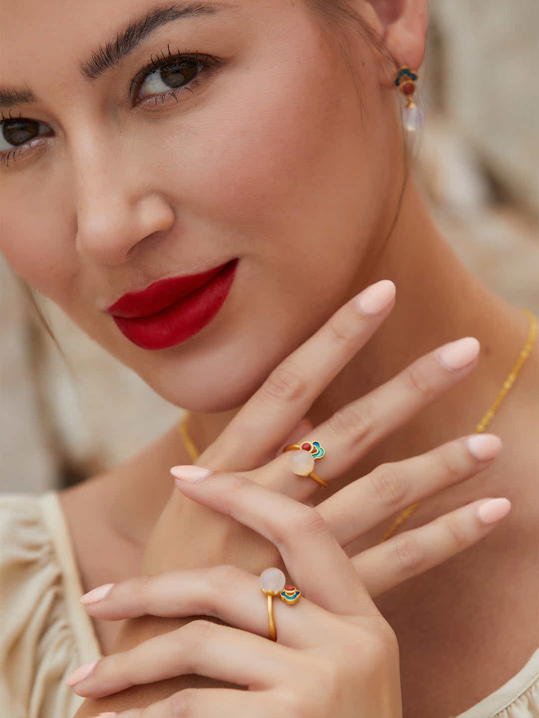 Inspired by ancient Chinese imperial aesthetics, this jewelry collection features pure white jade beads and auspicious cloud motifs, symbolizing serenity, luck, and grace.